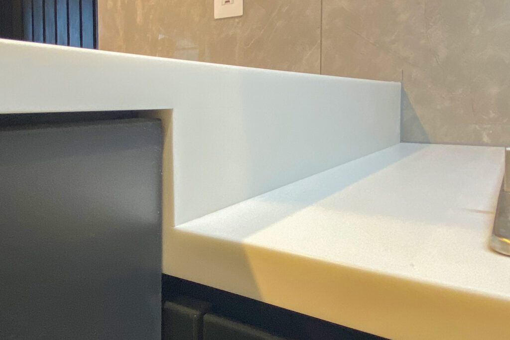 立ち上がり部分の継ぎ目のない美しい仕上がりは、オーダーキッチンならではの自由度が生きたポイントです。